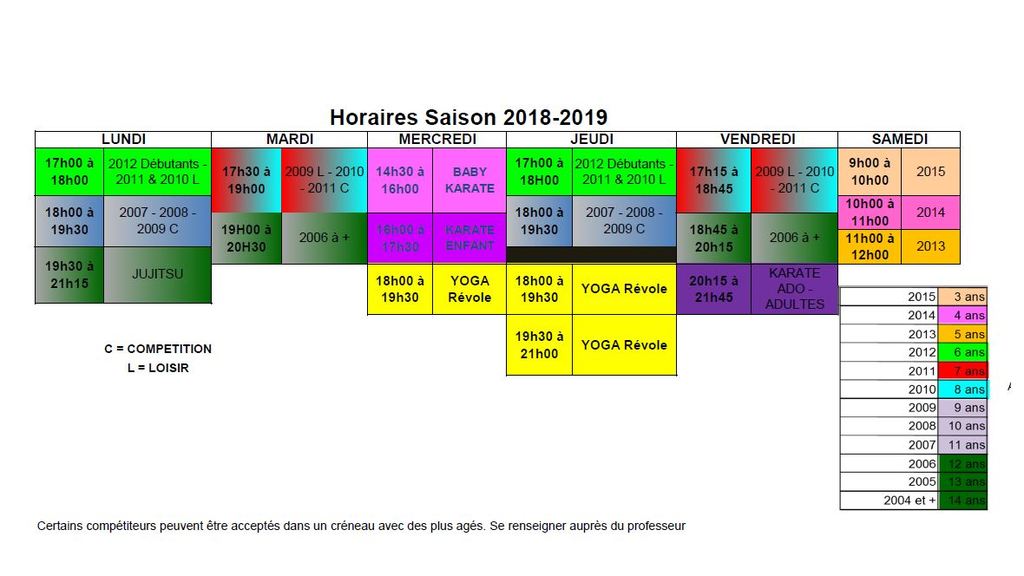 ci-joint le planning à jour des différentes sections : Judo - Jujitsu - Karaté et Yoga.