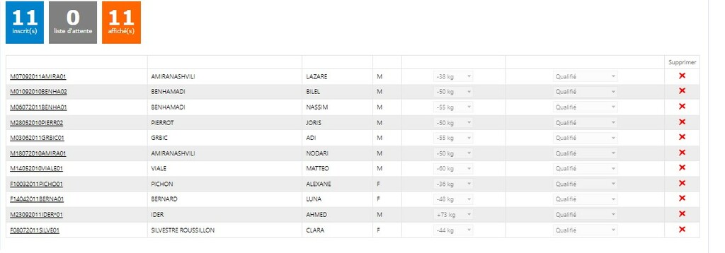 liste des judokas inscrit au tournoi Lagnieu, Riorges. et Andrézieux